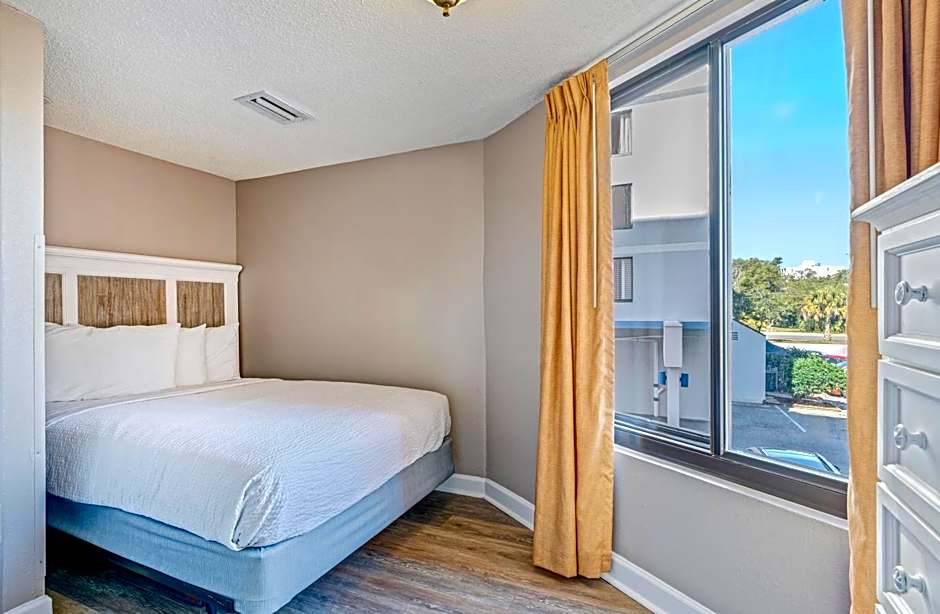 This room is located in the Saint Johns Building and is located across the street from the main property and ocean. It features two queen beds, a microwave, and TV. (See Hotel Policies)